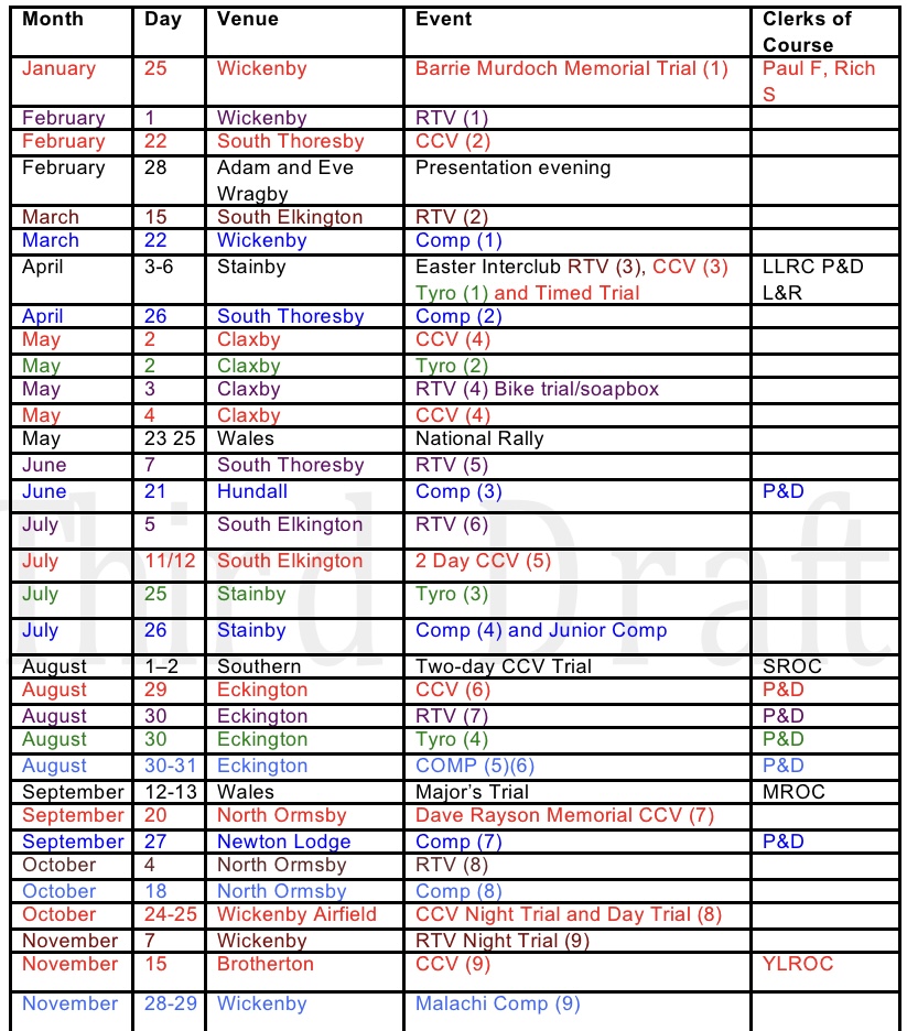 Competition Calendar 2026 Screenshot Download Please contact our Competition Secretary Jon Sharpe on 07974 234883 For event regulations (SRs) please click here.
